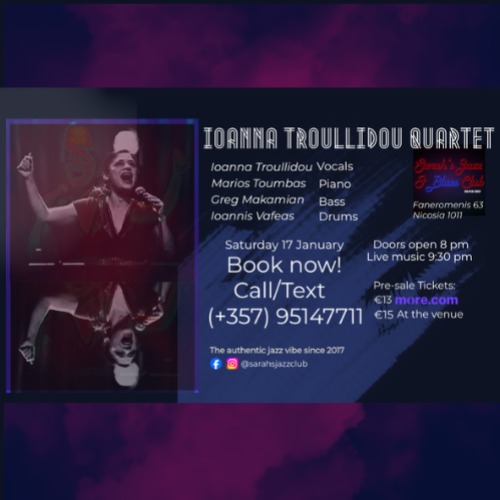 Ioanna Troullidou Quartet Xanthis Xenierou 35, Nicosia 1015, Cyprus Sarah's Jazz Club - Nicosia, Cyprus
