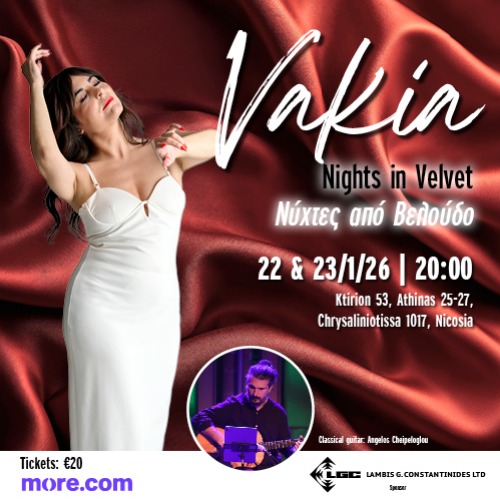 Η Βάκια Σταύρου επιστρέφει για δύο μόνο νύχτες στο Κτήριο 53, τον ζεστό και υπέροχο χώρο στην Λευκωσία προτού συνεχίσει την πορεία της στο εξωτερικό για τις επερχόμενες εκεί προγραμματισμένες συναυλίες της στις ευρωπαϊκές πρωτεύουσες.
