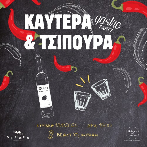 GastroParty: Kαυτερά & Tσίπουρα Βεΐκου 93, Αθήνα 117 41 CHNOPS Flavouring Curiosity - Κουκάκι, Αττική