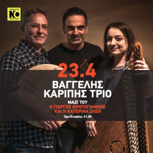 Βαγγέλης Καρίπης Trio Γιώργος Κοντογιάννης & Κατερίνα Ζήση Κωνσταντίνου Παλαιολόγου 3, Αθήνα 104 38 Theatre of the NO - Αθήνα, Αττική