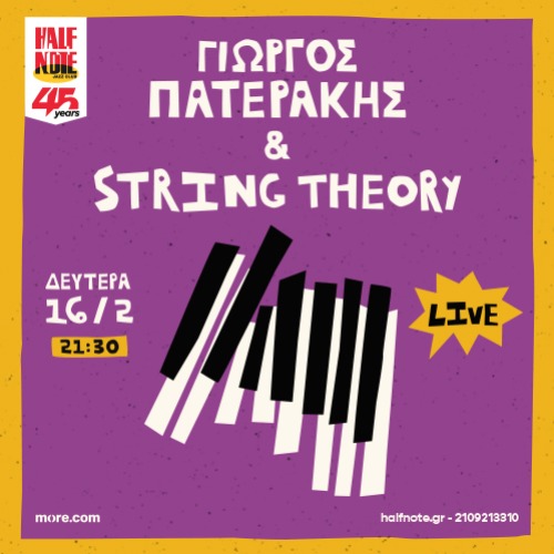 Γιώργος Πατεράκης & String Theory Τριβωνιανού 17, Μετς, T.K.: 11636 Half Note Jazz Club - Μετς, Αττική