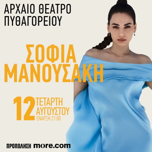 Μετά τα εντυπωσιακά Soldout της εμφάνισης της, στο Θέατρο Παλλάς, στο Gazarte καθώς και σε πολλές πόλεις της Ελλάδας, η Σοφία Μανουσάκη, ερχεται στην υπέροχη Σάμο, μαζί με μια ομάδα εξαίρετων μουσικών!