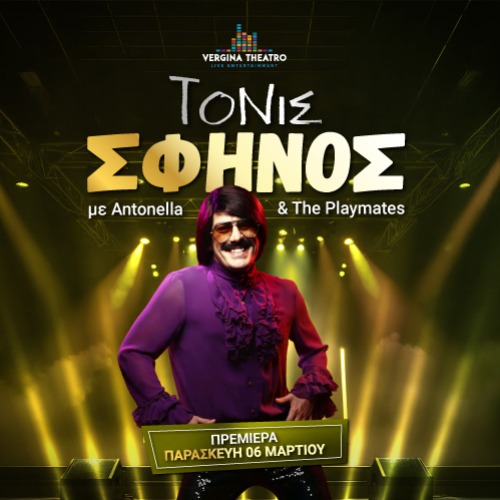 Το Vergina Theatro υποδέχεται ξανά τον Τόνι Σφήνο, την Antonella και τους Playmates σε ένα εκρηκτικό μουσικό show με αγαπημένες επιτυχίες από τις δεκαετίες του ’60, ’70 και ’80 μέχρι το σήμερα, διασκευασμένες από τον αξεπέραστο, χαρακτηριστικό ήχο και το ανεπανάληπτο στυλ του Τόνι Σφήνου.