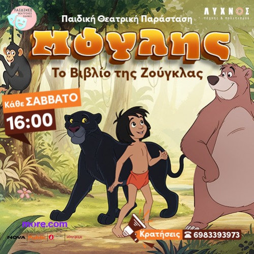ΜΟΓΛΗΣ - Το Βιβλίο της Ζούγκλας Χαλκιδικής 83, Αθήνα 118 55 Θέατρο Λύχνος Τέχνης & Πολιτισμού - Γκάζι, Αττική