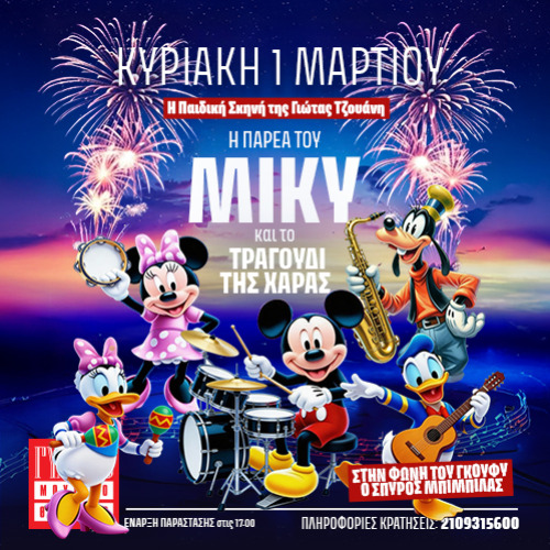 Η ΠΑΡΕΑ ΤΟΥ ΜΙΚΥ ΚΑΙ ΤΟ ΤΡΑΓΟΥΔΙ ΤΗΣ ΧΑΡΑΣ Λ. Συγγρού 143 Γυάλινο Μουσικό Θέατρο - Νέα Σμύρνη, Αττική