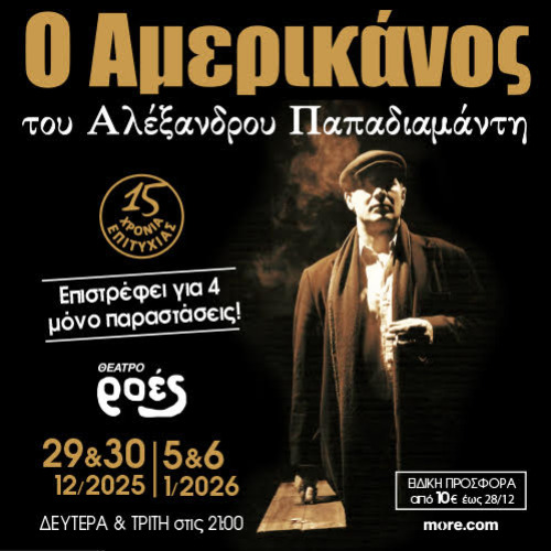 «Ο Αμερικάνος» του Αλέξανδρου Παπαδιαμάντη Ιάκχου 16 Θέατρο Ροές - Γκάζι, Αττική