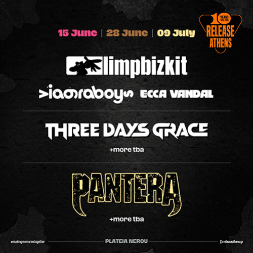 Release Athens 2026: Προσφορά τριημέρου / Limp Bizkit + Three Days Grace + Pantera Plateia Nerou - Kallithea, Attiki