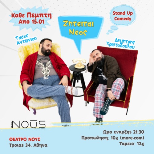 Ζητείται Νέος | Stand up Comedy Θέατρο Noūs - Black Box - Athens, Attiki