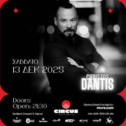 ΧΡΗΣΤΟΣ ΔΑΝΤΗΣ LIVE@CIRCUS.LARISSA Ερυθρού Σταυρού 4 Circus Entertainment Hub - Larisa, Λάρισα