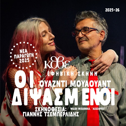 Η νέα παραγωγή της Εφηβικής Νεανικής Σκηνής του ΚΘΒΕ «Οι Διψασμένοι» (Assoiffés) του Ουαζντί Μουαουάντ (Wajdi Mouawad) έρχεται τον Nοέμβριο στη Μονή Λαζαριστών (Σκηνή Σωκράτης Καραντινός), σε μετάφραση Αλέξη Τζίμα και σε σκηνοθεσία - μουσική & σκηνογραφική ιδέα του Γιάννη Τσεμπερλίδη, με παραστάσεις για σχολεία Δευτεροβάθμιας Εκπαίδευσης.