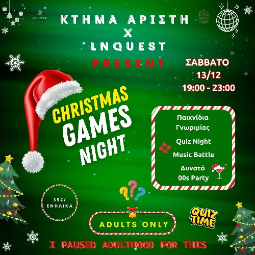Christmas Games Night στο Κτήμα Αρίστη Κτήμα Αρίστη - Halandri, Attiki