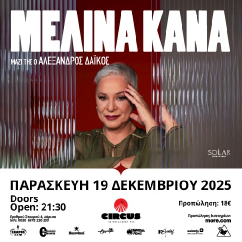 ΜΕΛΙΝΑ ΚΑΝΑ LIVE@ CIRCUS.LARISSA Ερυθρού Σταυρού 4 Circus Entertainment Hub - Larisa, Λάρισα